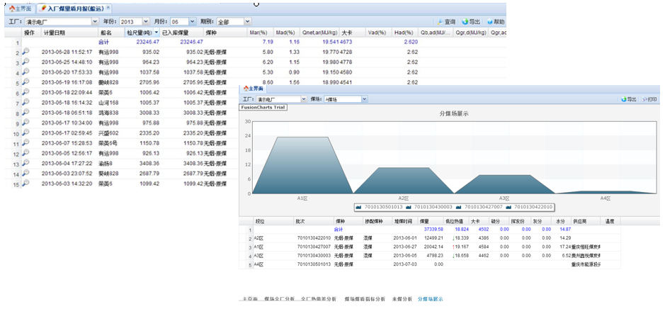 提供煤場實時量、質數據,減少錄入工作量,提高數據的實時性、準確性;可支持不同維度熱值差分析,諸如入廠與入爐、計劃與入廠、采購與入廠、入廠與結算等。